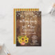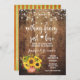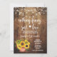 Le modèle de réception de mariage rustique avec tournesols indique "rien de fantaisiste, juste de l'amour" et comporte un fond en bois rustique, un panier avec des tournesols, des guirlandes lumineuses et un dos assorti. Pour accéder aux outils de modification avancés, veuillez aller dans « Personnaliser » puis cliquer sur le lien "cliquez pour personnaliser davantage".