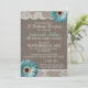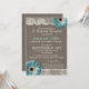 Invitation de réception de mariage rustique barbecue sarcelle Fleur en dentelle et bois pour un barbecue de mariage ou une réception décontractée.