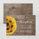 Cartes de réception de mariage en bois de grange rustique tournesol et coccinelle.