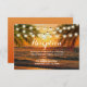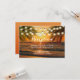 Cartes de réception de mariage sur la plage au coucher du soleil avec palmiers et guirlandes lumineuses d'été tropical.