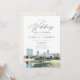 Cette invitation à la réception de mariage présente une peinture à l'aquarelle de la skyline de Fort Worth, au Texas, et une police manuscrite élégante. Modifiez facilement la plupart des textes pour les adapter à votre événement