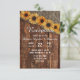 Invitation Réception de mariage tournesol en bois rustique et