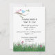 Cartons d'invitation de réception de mariage aux tourtereaux rose et bleu mignons. Des tourtereaux rose et bleu sur une branche avec des herbes et des fleurs en bas. Les informations de RSVP sont incluses au verso, mais si vous préférez un RSVP séparé, veuillez m'envoyer un e-mail à shutterbug600@yahoo.com