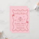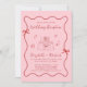 Invitation à la réception de mariage tendance d'inspiration rétro rose et rouge, avec un cadre ondulé orné de coquettes et d'illustrations fantaisistes dessinées à la main de coeurs, d'étoiles et d'une élégante table mariage romantique. "Mariage Réception" et les noms de la mariée et du marié sont présentés dans un script rouge ludique.