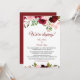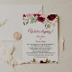Cette élégante carte de réception à velours fleuri au printemps bordeaux est parfaite pour une soirée post-elopement moderne. Le design présente des roses et des pivoines idylliques illustrées bordeaux, rousses, roses, roses rouges et vertes, évoquant la beauté naturelle. Les cartes RSVP sont vendues séparément.
