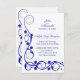 © Socialite Designs. Carton d'invitation de réception de mariage élégant avec tourbillons et fleurs bleu royal prêt à être personnalisé avec vos propres informations. Choisissez parmi plusieurs types de papier pour invitation. Besoin d'AIDE pour la personnalisation ? N'hésitez pas à me contacter avec vos besoins.