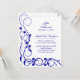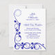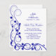 © Socialite Designs. Invitation de réception de mariage élégante avec tourbillons et fleurs bleu royal prête à être personnalisée avec vos propres informations. Choisissez parmi plusieurs types de papier pour l'invitation. Besoin d'AIDE pour la personnalisation ? N'hésitez pas à me contacter avec vos besoins.