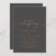 Cette carte de réception en or gris classique est parfaite pour une soirée post-elopement moderne. Le design sobre et élégant présente une typographie de script chic et sophistiquée en or brûlé. Les cartes RSVP sont vendues séparément.