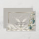 Ce joli encart de la réception est composé d'un élégant duo de gazon de pampas et de fleurs turquoises d'anthurium fumées gravées en or - Combinez cela avec l'arrière - plan taupe aux champignons et vous avez un thème mariage élégant et mémorable. La calligraphie manuscrite moderne combinée à une disposition minimaliste de police de style contemporain crée un design attrayant. Il fait partie d'un ensemble mariage coordonné avec accessoires mariages assortis. Illustration originale de ©WhimsicalArtwork™ créée spécialement pour BarefootBride™