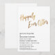 Invitez vos invités à votre célébration de mariage à l'aide de ces cartes d'invitation simples. Pour l'en-tête, j'ai utilisé une police manuscrite décontractée et moderne pour créer une superposition de typographie graphique indiquant "Happily Ever After". Cette image a été embellie avec un effet de feuille de faux or lisse pour un résultat festif. Remplissez les espaces vides du modèle avec vos informations pour personnaliser le design. Toutes les couches ont été laissées déverrouillées afin que vous puissiez cliquer pour personnaliser davantage et repositionner le texte ou même changer les tailles ou les polices. La couleur de fond a été laissée blanche, mais celle-ci est également modifiable ; changez-la en l'une de vos couleurs de mariage si vous préférez. Vous pouvez également choisir d'ajouter une image à l'arrière. N'hésitez pas à nous contacter pour obtenir de
