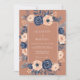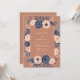 Cette conception présente des roses bleu marine profondes et des anémones blanches crémeuses sur un fond chaud de Sienne. L'arrangement comprend des baies et un feuillage bleus poussiéreux délicats qui entourent la zone centrale. Il offre une esthétique sophistiquée et lunatique idéale pour une fin de saison ou un événement automnal.