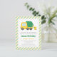 Invitation tes invités à jeter ce qu'ils ont à portée de main et à rejoindre la fête d'anniversaire du petit garçon ! Ce camion à ordures jaune et vert vif est en train de vider une poubelle. Sur le côté du camion est le classique recyclage, réutilisation et réduire logo. Bandes inclinées jaune et vert motif pour arrière - plan. Un thème unique pour les garçons d'anniversaire qui aiment les camions ! Personnalisez facilement avec les détails de votre fête. D'autres camions sont également disponibles.