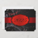 Invitation à la fête de graduation rouge et noir avec floral rouge clair et foncé et un ruban rouge qui traverse pour montrer l'année de graduation. Le dos de la carte est noir avec une police rouge clair pour que les gens remplissent les invitations à la fête de remise de diplômes.