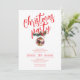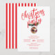 Bright and festive Christmas party invitation featuring 'Christmas Party' in bold handwritten text and a watercolor disco ball hanging from a pine branch. Customizable event details below. The back has a red and white striped pattern for a fun holiday touch!