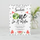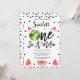 Red Black Modern One in A Melon 1st Birthday Invitation Watermelon thème invitation de premier anniversaire pour une petite fille avec toute une pastèque et des tranches de pastèque. Celui-ci, dans une invitation de premier anniversaire à thème melon, présente également quelques pips noirs et un titre de calligraphie décorative.