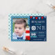 Éblouissez vos invités avec cet invitation de fête nautique cool avec un beau phare et des éléments nautiques mignons avec typographie moderne contre un arrière - plan bleu marine. Ajoutez simplement les détails de votre événement sur ce modèle facile à utiliser et ornez cette carte avec la photo préférée de votre enfant pour en faire une invitation unique. Retournez la carte pour révéler un élégant motif d'ancre bleu au dos de la carte.