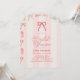 This coquette bridal shower invitation features a red bow on a cream background with light pink stripes. The reverse side features a cream background with a red bow pattern. Personalize it for your needs. You can find matching products at my store.