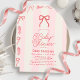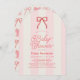 Invitation Red Bow & Pink Stripes Girl Baby Shower