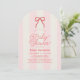 This coquette girl's baby shower invitation features a red bow on a cream background with light blue stripes. The reverse side features a cream background with a red bow pattern. Personalize it for your needs. You can find matching products at my store.