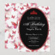 This elegant red and black 18th birthday invitation has red butterflies, a red tiara crown, and a red glitter oval with a personalizable template to create your own message. The invitation template is customizable in the listing editor and is also available as a digital download that's printable after you personalize it. It's a classic style that's perfect for a family event to celebrate a milestone birthday.