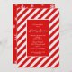 Invitation invité à un déjeuner de vacances, un dîner de Noël ou un événement de vacances avec une bande de bonbons rouges et une carte de motif de flocon de neige.