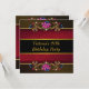 Elégant damas rouge et noir avec or, rose et bleu fleurs de bijoux invitation femme 50e anniversaire.