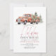 Cette invitation à la maison ouverte de Noël chic comprend un camion vintage de ferme rouge avec des arbres de Noël et des décorations de vacances en aquarelle. L'envers comporte un arrière - plan rouge avec des motifs géométriques. Personnalisez-le selon vos besoins. Vous pouvez trouver des produits correspondants dans mon magasin.