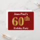 Invitation Red, Faux Gold 60th Birthday Party + Nom personnal