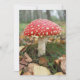 Une invitation montrant des toadstool rouge volent agaric champignon parmi les feuilles jaunes et la forêt comme un arrière - plan