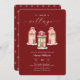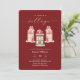 Cute adorable modern elegant whimsical winter baby shower theme, Holiday baby shower theme, design feature red and white watercolor whimsical Gingerbread house village, snowflake, and script calligraphy typography "It Takes A Village" you can customize your own unique text and color.