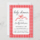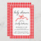 Invitation Red Gingham Cute Bow Handwriting Baby Shower
