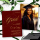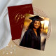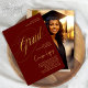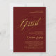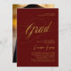 Invitation vos proches à votre cérémonie de remise de diplômes avec cette élégante calligraphie de grad scénarisée rouge et or minimaliste. Ajoutez votre propre photo et customisez l'invitation à votre goût.