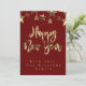 Rouge avec Gold Look Etoiles Motif Script moderne Joyeux Nouvel An Elégant Carte de Nouvel An
