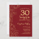 Red Gold Floral Surprise 30th Birthday Party Invitation. Design moderne minimaliste avec accents botaniques et police de script de typographie. Carte invitation florale simple parfaite pour une célébration anniversaire surprise femme élégante. Peut être customisé à n'importe quel âge.