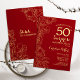 Red Gold Floral Surprise 50e anniversaire de fête Invitation. Design moderne minimaliste avec accents botaniques et police de script de typographie. Carte invitation florale simple parfaite pour une célébration anniversaire surprise femme élégante. Peut être customisé à n'importe quel âge.