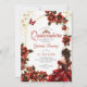 Invitation Red Golden Tiara Roses Butterfly Quinceañera
