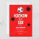 Invitation à la fête d'anniversaire pour enfant. 6ème anniversaire. Kickin à six heures. Soccer. Red.