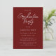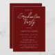 Red Modern Calligraphy Script Graduation Party Invitation Card. Félicitations à la GRAD ! Félicitations pour leur succès bien mérité et célébrez-les avec cette belle carte. Tous les textes sont pré-arrangés pour que vous personnalisiez facilement et rapidement avec vos propres détails.