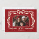 Rouge moderne Noël Botanique Bow Ribbon Photo Carte cadre avec texte JOY