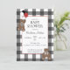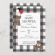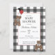 Invitation Red on Black Buffalo Check Teddy Bears Baby Shower