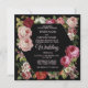 Elegant Red Pink Floral Greenery Rustic Black Wedding Invitation. Unique, beautiful, modern design. Easy to be personalized. Font style, size and colors can be changed. Matching items available.