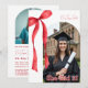 Celebrate your graduate with this elegant ribbon‑accent graduation party invitation, designed to highlight their achievement in a bold, memorable way. The front features a customizable photo framed with a striking red ribbon bow and clean modern typography, giving the design a polished, celebratory feel. All text fields can be fully personalized, allowing you to update the graduate’s name, degree, event details, and any special notes with ease.