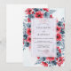 This artistic design features a striking contrast between vibrant red poppies and slate blue foliage. The watercolor style creates a moody yet romantic atmosphere, perfect for a sophisticated seasonal event. Delicate leaves and dark-centered blooms are arranged across the surface, offering a refined and painterly aesthetic.