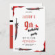 Boy Red Sword Red, White et Black invitation à la fête d'anniversaire. Ninja