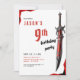 Invitation à la fête d'anniversaire du guerrier d'épée rouge et blanche.