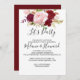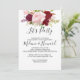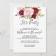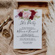 Cette invitation rouge tropicale et romantique est parfaite pour un fiançailles rustique. Le design artistique bordo marsala présente des roses d'aquarelle, verts, roses, bordeaux et roux assortis de verdure bien disposés dans un bouquet de fleurs gracieux et radieux. Cette invitation peut être utilisée pour une fête de fiançailles, une fête de retraite, un baby shower ou tout événement!