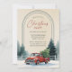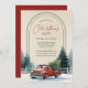 Invite your favorite people to a cozy winter gathering with this rustic Christmas party invitation. A classic red vintage pickup hauls a fresh evergreen through snowy pine trees, framed by an elegant arched border. All wording is fully editable—update date, time, address, RSVP and host name to fit your celebration. Perfect for farmhouse, country, cabin, and vintage holiday themes.