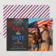 Fun yet elegant, this save the date is fully customizable with your names, photo (if applicable), and wedding date, making it a perfect start to your Independence Day wedding celebration.
