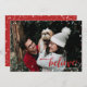 Élégants et stimulants, ces cartes photos de vacances sont une GRANDE façon d'envoyer un peu d'amour et de réjouir cette saison de Noël. Présente des étoiles blanches et rouges et de la neige bokeh blanche autour d'un modèle photo avec un texte de script blanc "croire" sur une aquarelle rouge peinte à l'avant. Le texte blanc supplémentaire est personnalisable. Le dos est doté d'un arrière - plan rouge solide avec les mêmes étoiles et bokeh que l'avant. Joyeux Fêtes et Joyeux Noël !