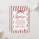 A charming red and white winter-themed first birthday thank you card featuring classic stripes, elegant script lettering, and delicate snowflake accents. Perfect for expressing gratitude after a holiday or winter one-derland celebration. Personalizable with your child’s name and message, making it a heartfelt keepsake for guests.